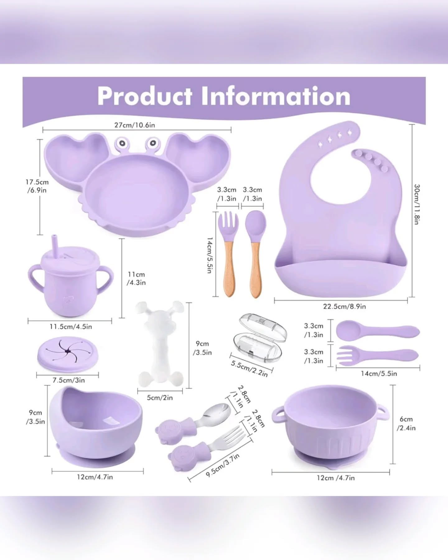 Baby Mall Lavender Silicone Baby Feeding Set 15-Piece