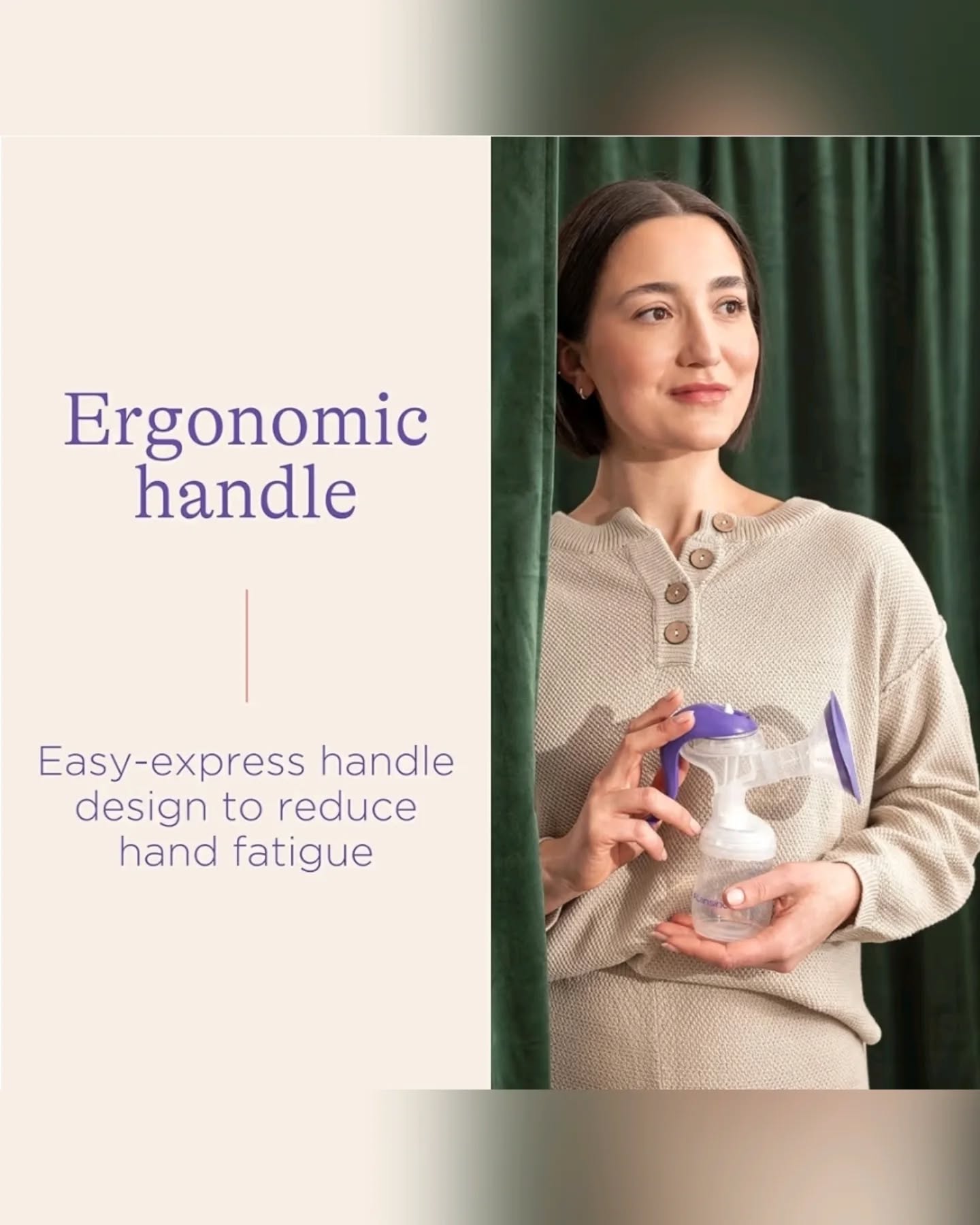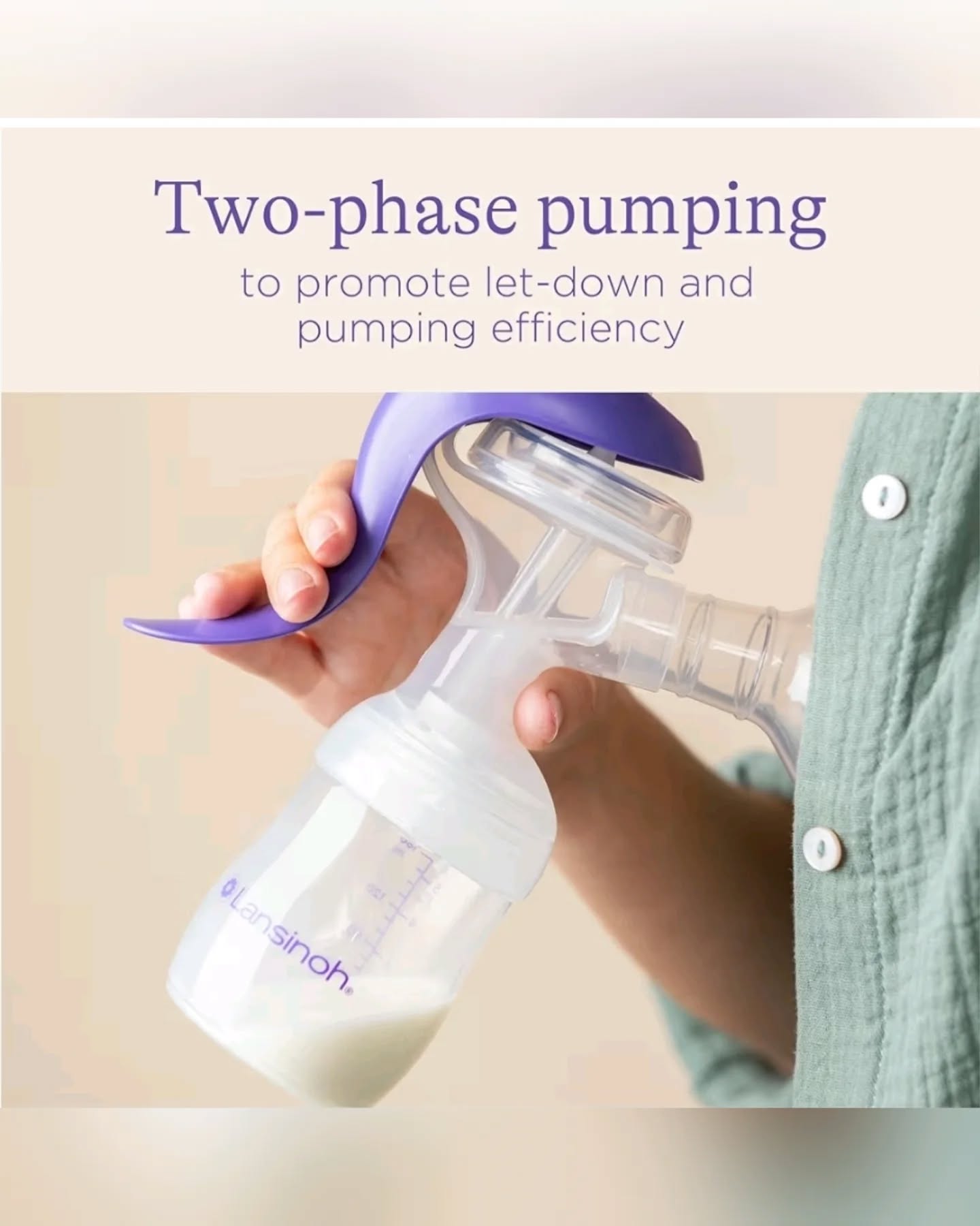 The Lansinoh Manual Breast Pump is a quiet, portable solution for on-the-go pumping, featuring a comfortable flange and easy hand-squeeze design. Ideal for quick sessions, relieving engorgement, or as a backup, it includes a 5oz baby bottle with a slow flow NaturalWave® nipple to support natural sucking motion and reduce nipple confusion. This small, lightweight, and easy-to-clean pump is designed with two-phase pumping (Let-down and Expression) for efficient milk expression.