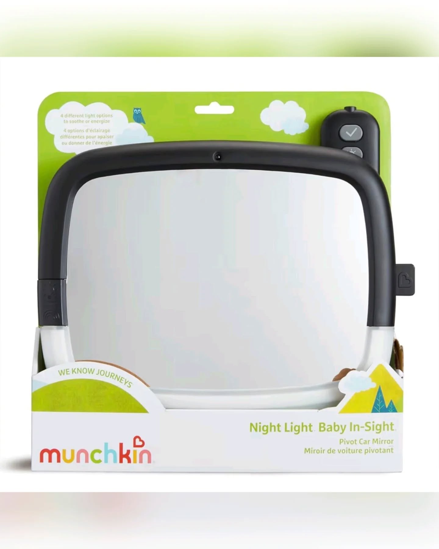 Munchkin Black Baby Car Mirror with Night Light & Remote 11.25 x 8